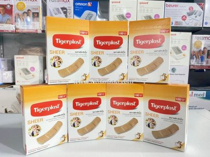 Tigerplast CLEAR พลาสติกสีเนื้อ พลาสเตอร์ปิดแผล ชนิดพลาสติกสีเนื้อ (1กล่อง100 แผ่น)
