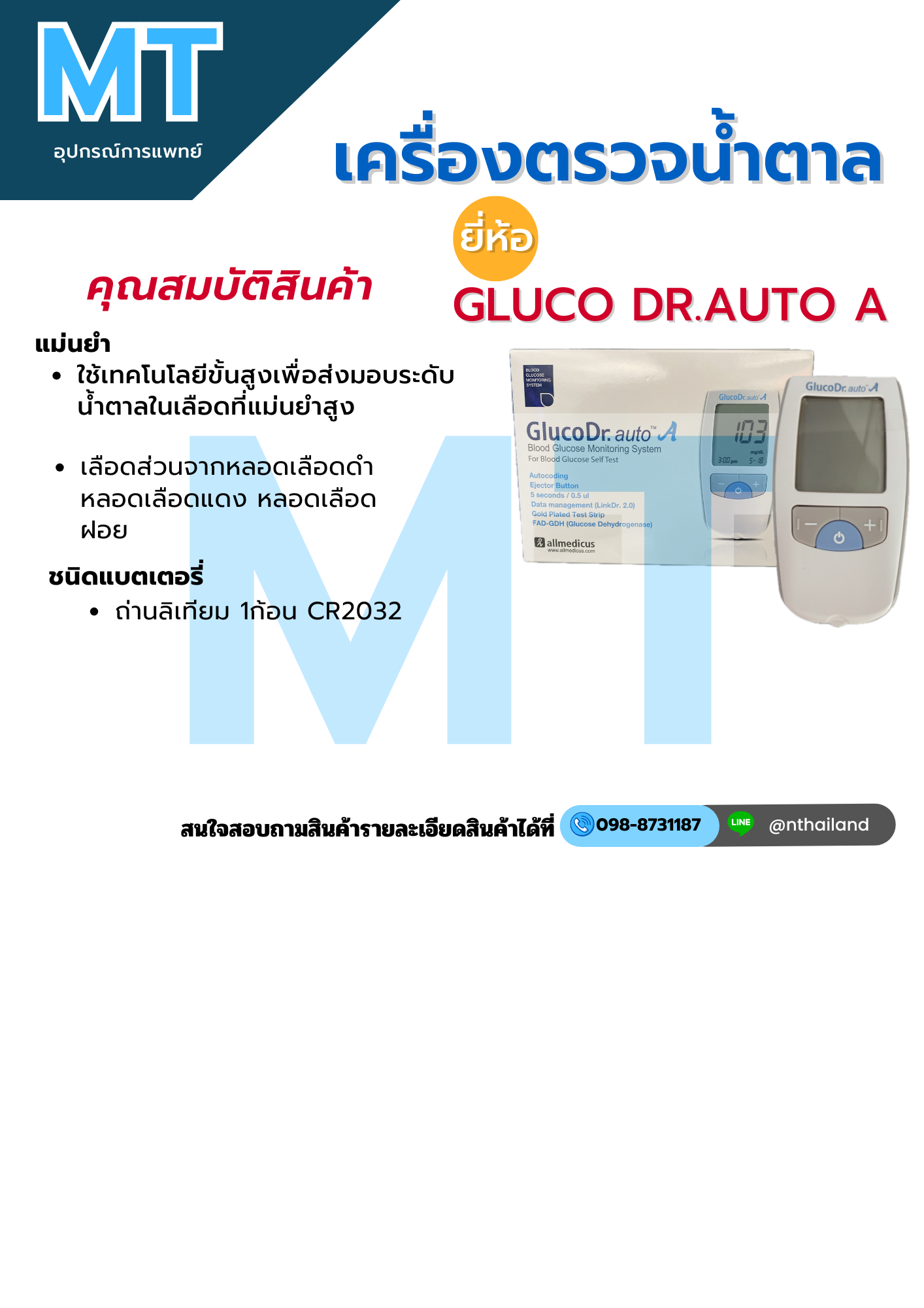 เครื่องวัดระดับน้ำตาลในเลือด Gluco Dr.auto a พร้อมแผ่น